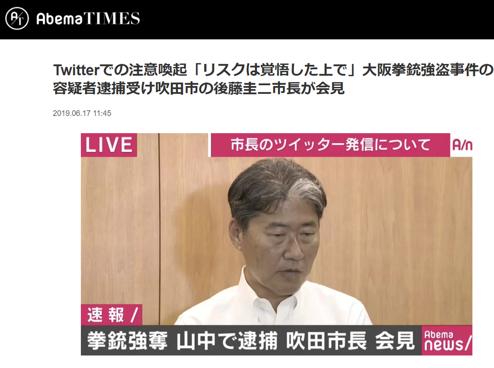 今回の逮捕が箕面市だったように、事件が起きた吹田市だけで対応をしても意味がありませんでした。