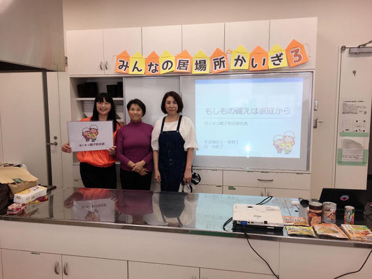 今回は「防災」を切り口に、子ども・障がい者・高齢者・アレルギー患者・多文化共生の視点を取り入れながら、講座&調理実演&試食&座談会が行われました。