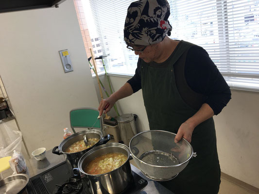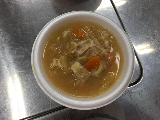 今回のメニューは、野菜だしでつくった豚汁でした。
